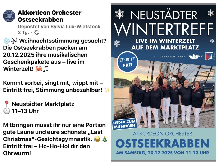 Seien Sie dabei, wenn wir am Samstag, 08.11.2025 maritime, schwungvolle und kirchliche Musik in einem abwechslungsreichen Programm miteinander kombinieren.